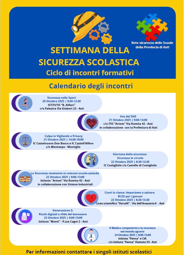 Settimana europea della sicurezza – dal 20 al 24 ottobre 2025 Clicca per qui per vedere tutte le iniziative della Provincia di AstiDi wp_16338111 / 21 Settembre 2025